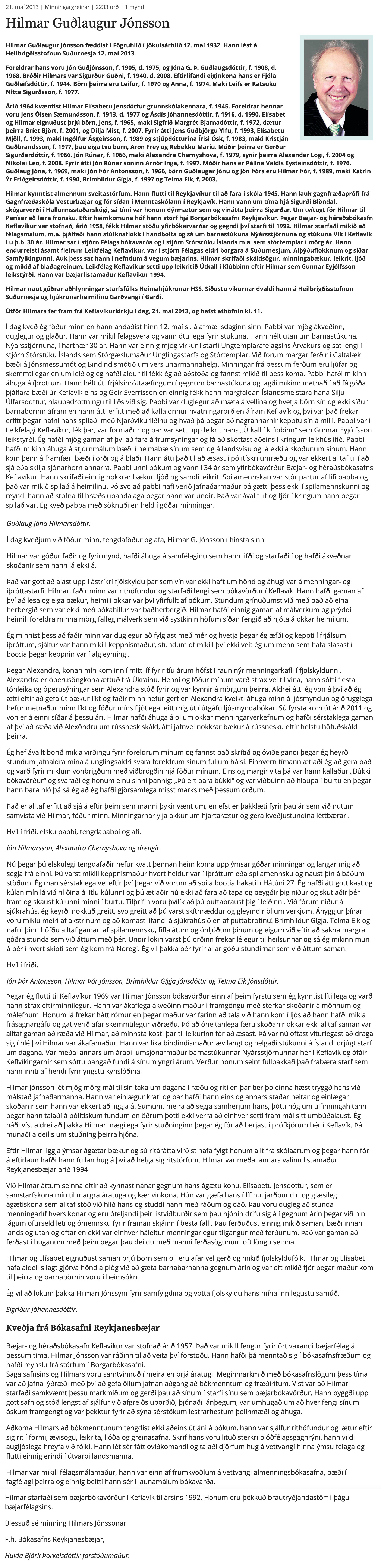 Viðtöl við Hilmar og greinar